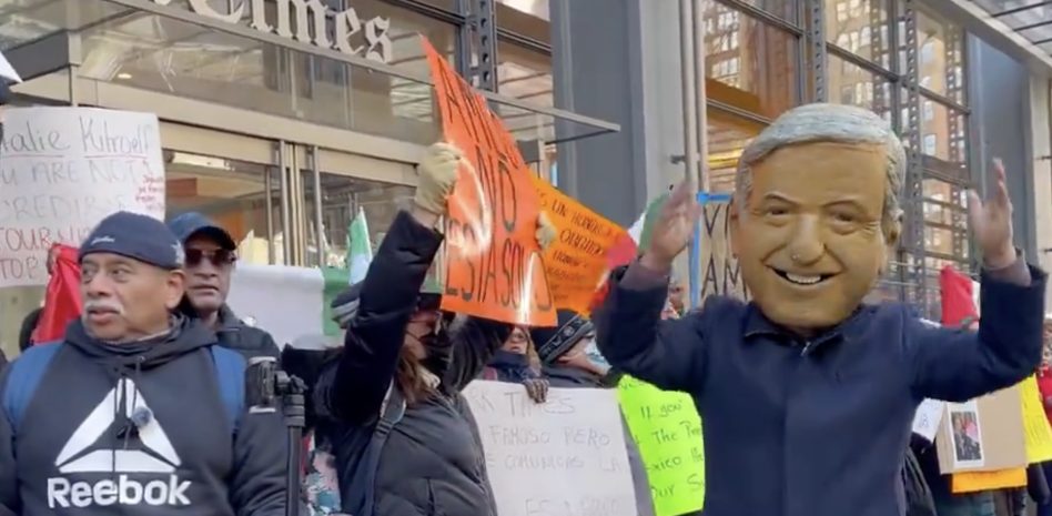 Seguidores de AMLO en Nueva York protestan ante oficinas del NYT por reportaje donde vinculan apoyos del narco